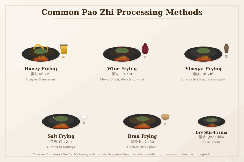 Vinegar frying (Cu Zhi) enhances Liver-directing properties and helps with pain relief.