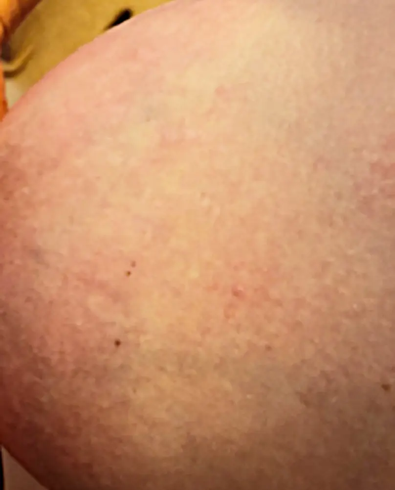 As can be seen on picture 4, the skin just looks reddish and somewhat swollen.