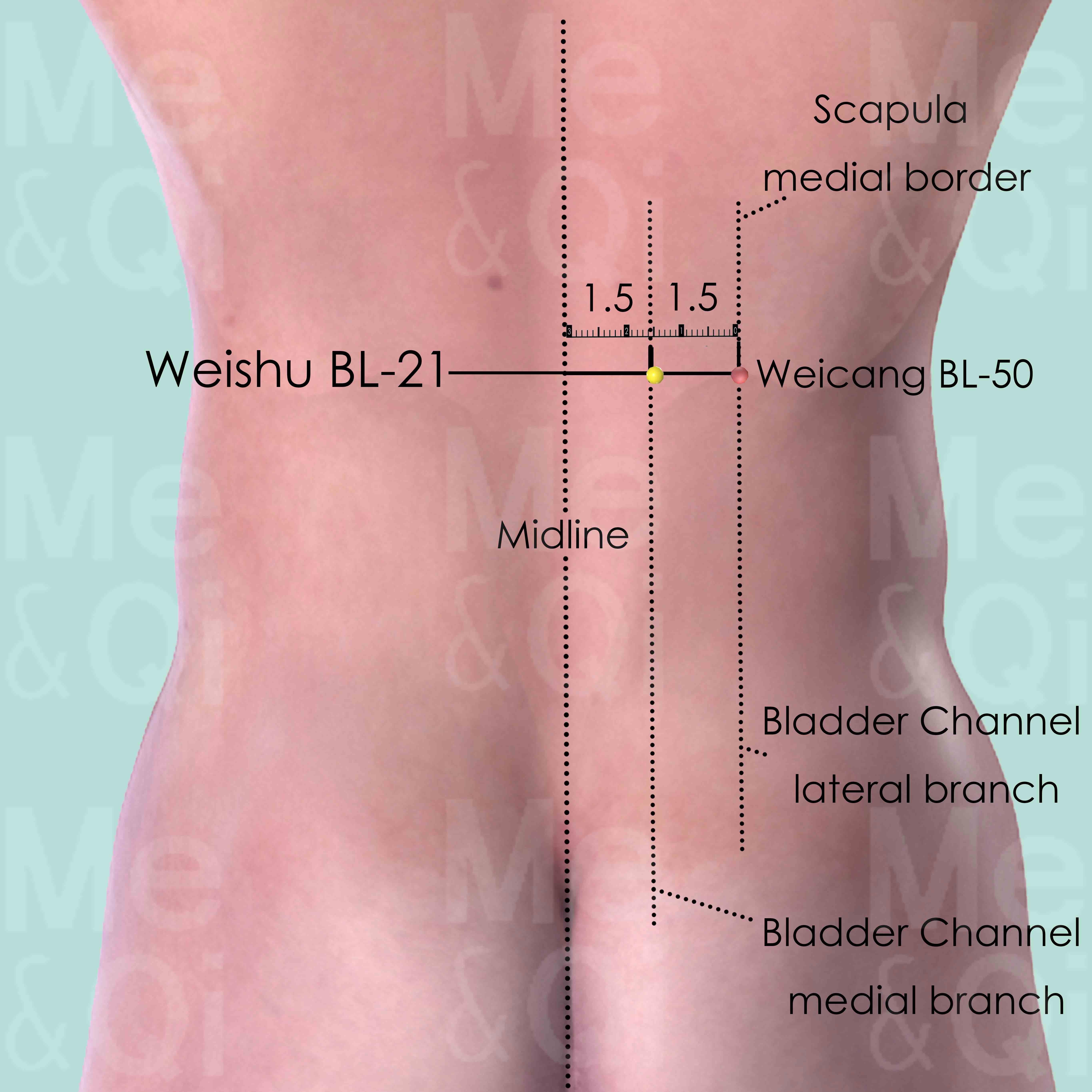As the Back Transporting-Shu point of the Stomach, Weishu BL-21 is an important point with various functions related to the Stomach.
