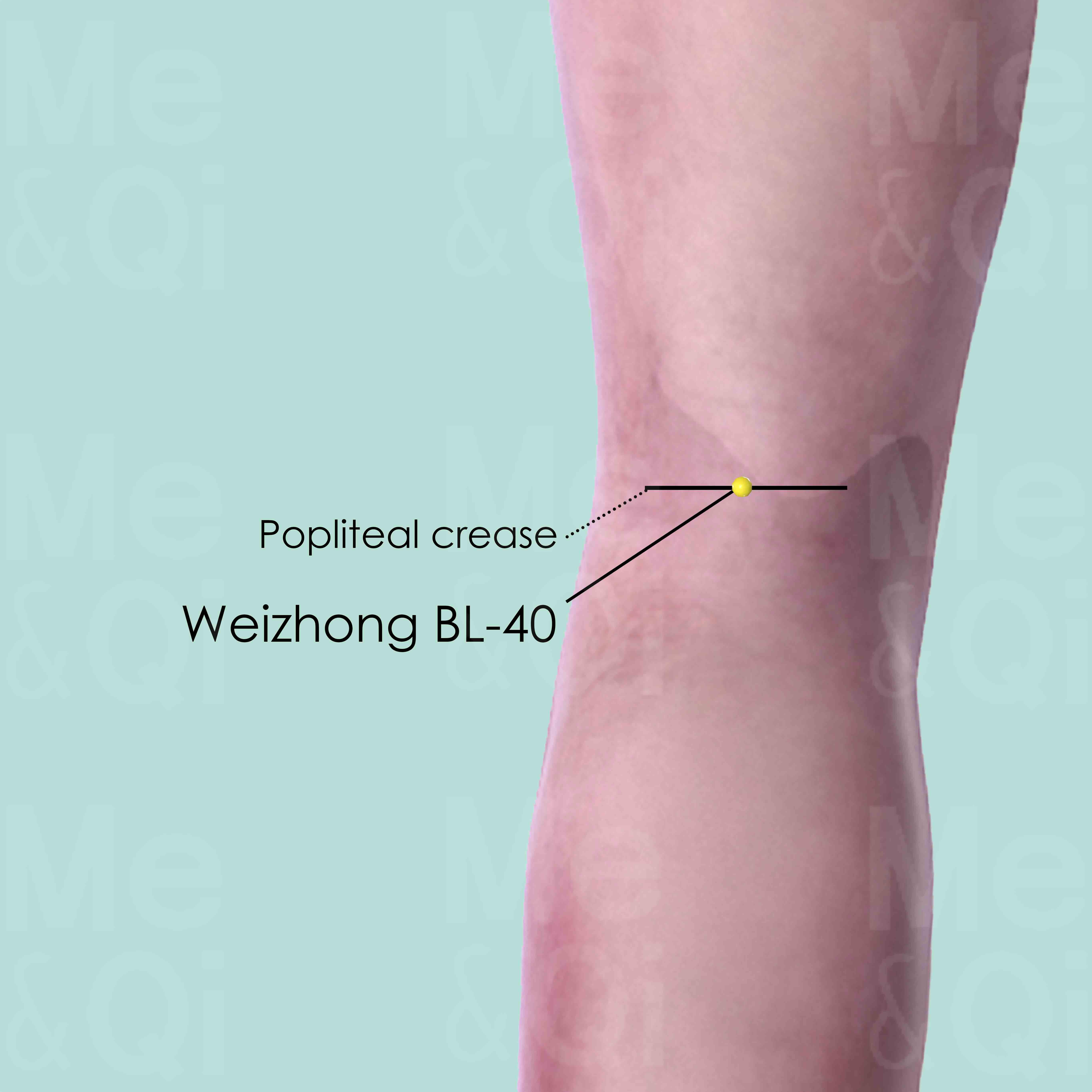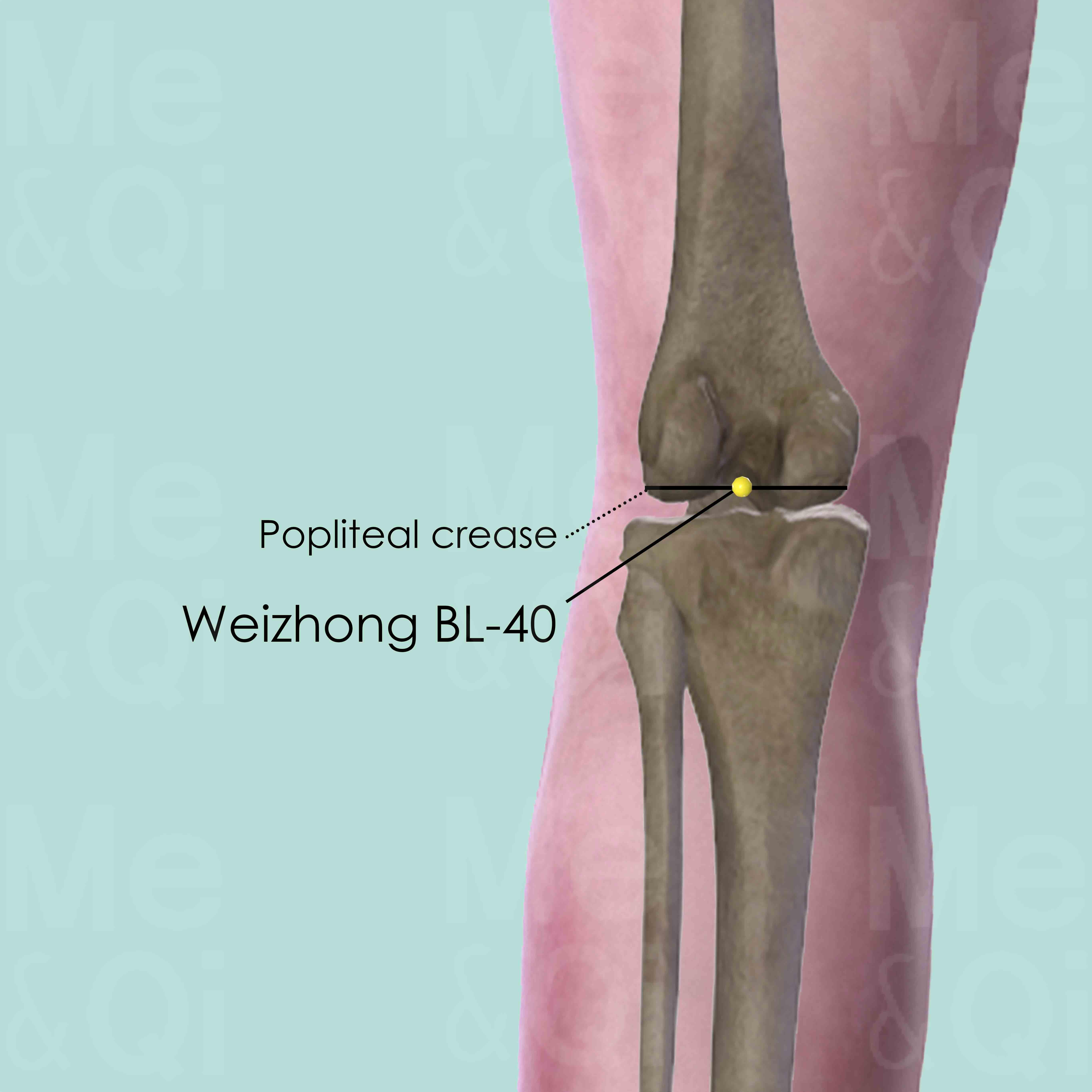 Vertically 0.5–1.5 cun. Caution: Popliteal nerve, artery and vein lie deep to this point.