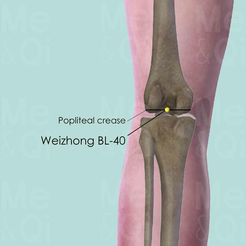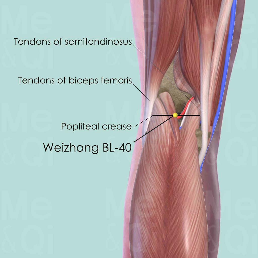 Ling Shu (Spiritual Pivot): "委中,腘中央,為合,委而取之" - 'Weizhong is in the center of the popliteal fossa, it is the He-Sea point; bend [the knee] to access it.'