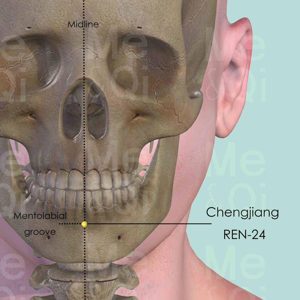 Chengjiang REN-24 is mostly applied to expel Interior Wind which gives rise to mouth and facial paralysis. Other typical symptoms include hemiplegia, deviation of mouth, lockjaw, epilepsy and tetany.