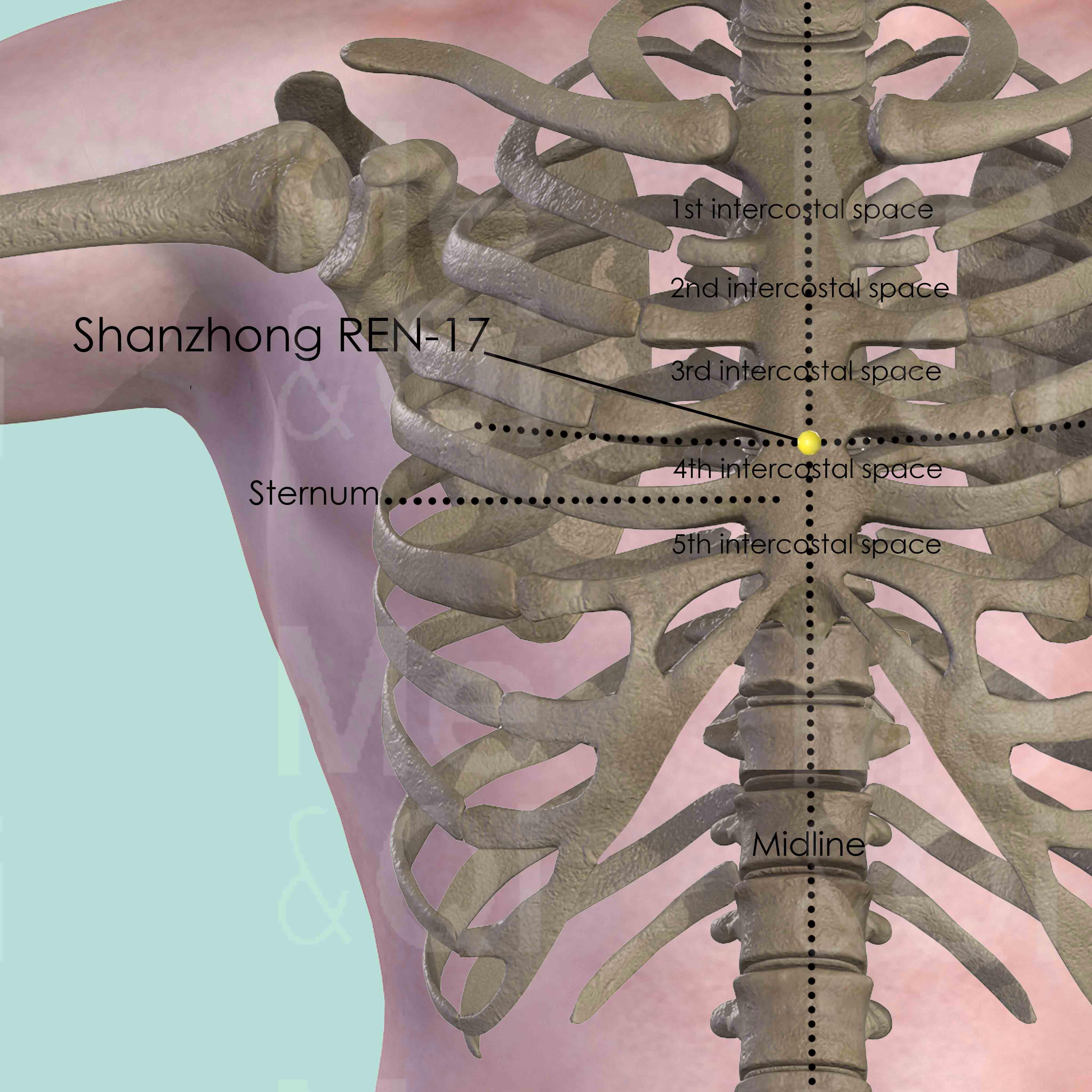 Some classical texts forbid needling this point directly. Use with care in patients with Qi deficiency, as they may have strong reactions. Located over the sternum, which in some individuals may have a sternal foramen (persistence foramen sternal) — deep or perpendicular needling risks pneumothorax or intracardiac puncture. Always needle transversely/obliquely. Avoid strong manipulation in weak patients. Moxibustion is often preferred over needling for tonification purposes.