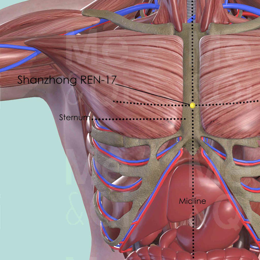 Finally, Shanzhong REN-17 benefits the breasts and increases postpartum breast milk supply. The insufficient supply can be due to Qi and Blood Deficiency or Qi Stagnation.