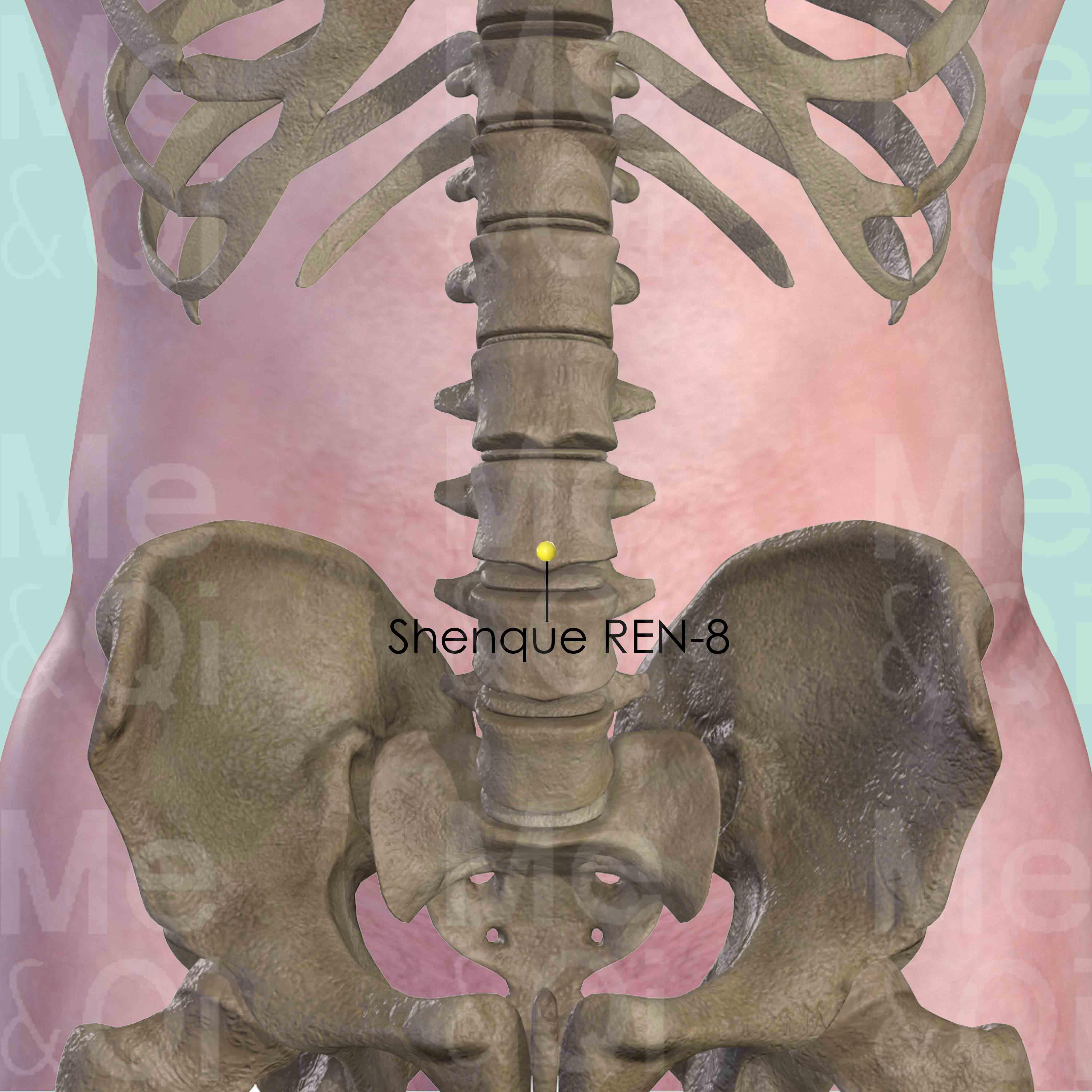 The 'Great Dictionary of Chinese Acupuncture’ comments on this point: Shenque Ren-8 is the abode of the Spirit (Shen 神). Above it there is Heaven (Shuifen REN-9 and Xiawan REN-10), Below it there is Earth (Guanyuan REN-4 and Zhongji REN-3), In the middle there is Person (REN-8 itself). On both sides there is Qixue KI-13 and Huangshu KI-16, which are like guarding watchtowers.