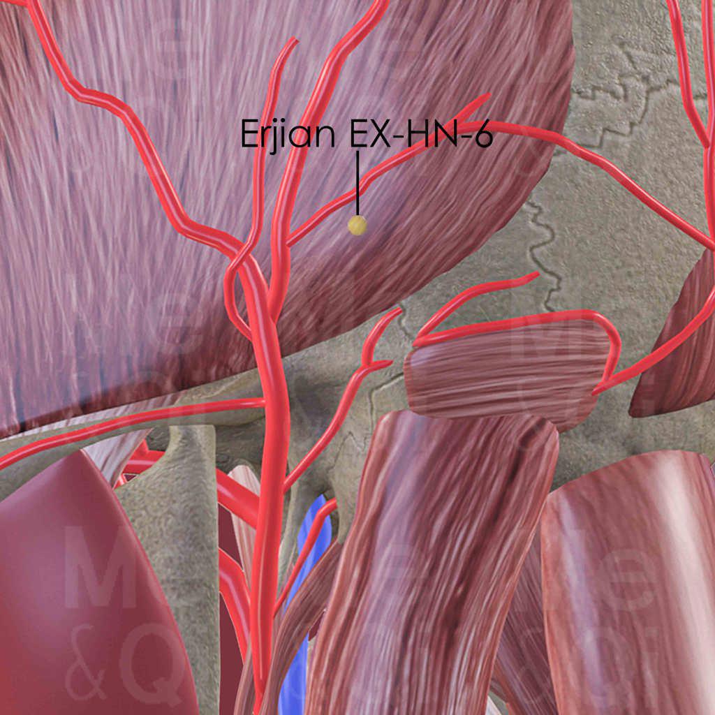 Classical texts describe Erjian as a point for clearing heat and draining fire from the head and eyes. The Qian Jin Yao Fang (Thousand Golden Essential Prescriptions) mentions ear apex bloodletting for eye diseases and fever conditions.