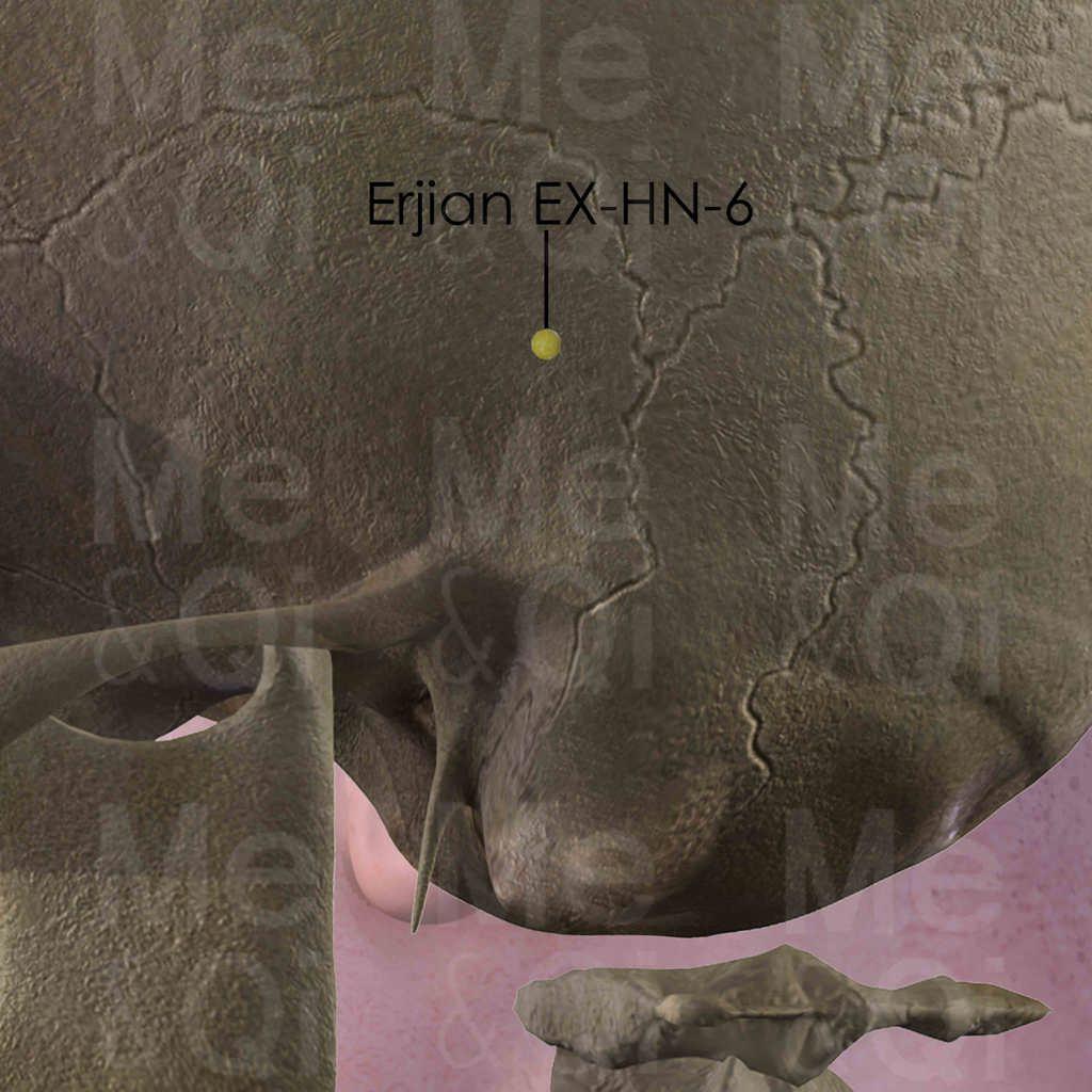 Erjian EX-HN-10 is not a major point. Its main function is to clear Heat so as to remove swellings, especially on eyes and throat.