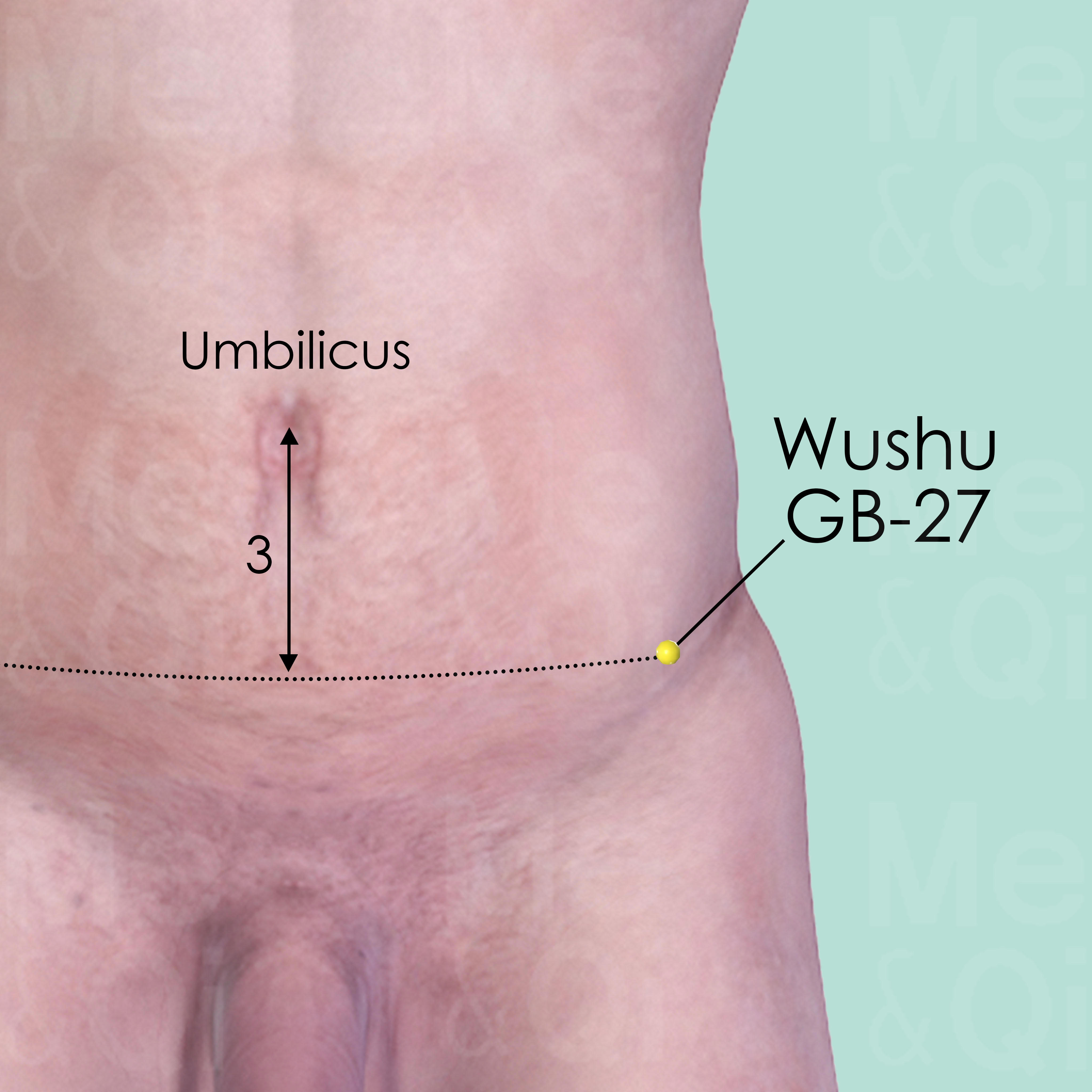 Wushu GB-27 is similar to Daimai GB-26 in function. Both points is able to regulate Girdle Vessel, so as to treat leucorrhoea, menstruation problems or pain in the lower abdomen.