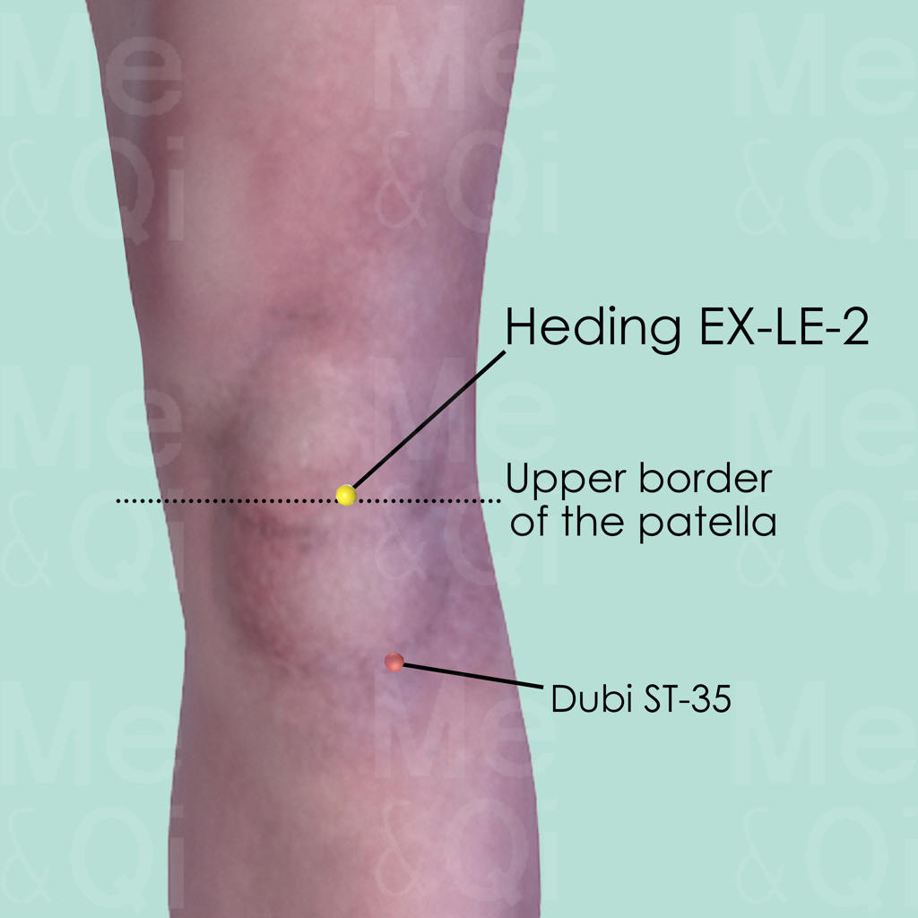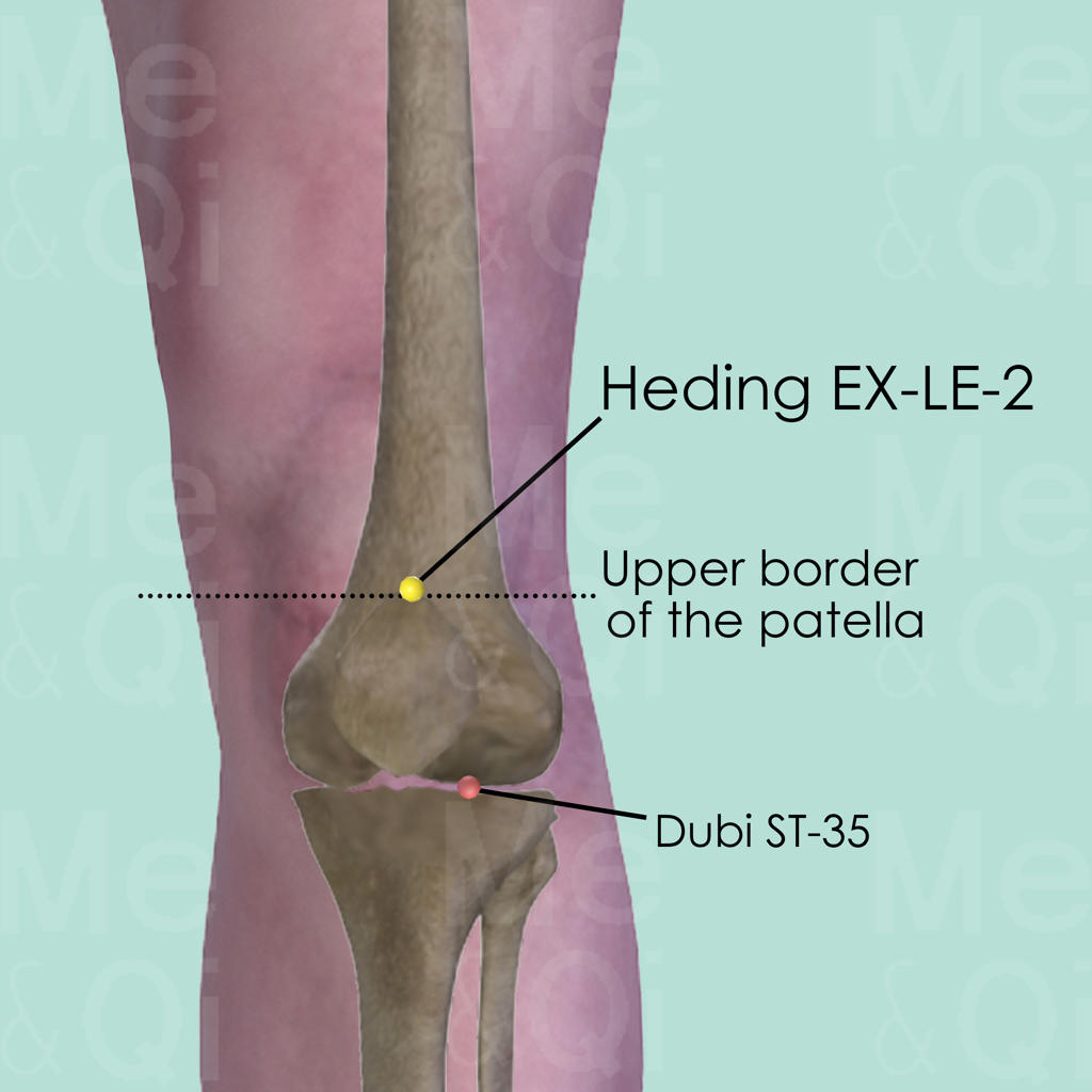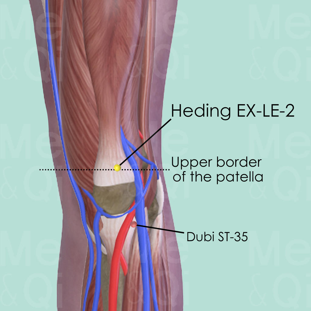 Heding EX-LE-2 is an important supporting points in treating knee disorders by promoting local Qi and Blood circulation.