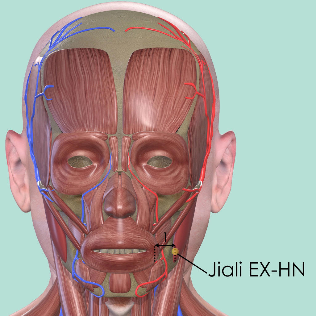 Jiali EX-HN is not a major point. Its main function is to clear Heat from the mouth and throat.