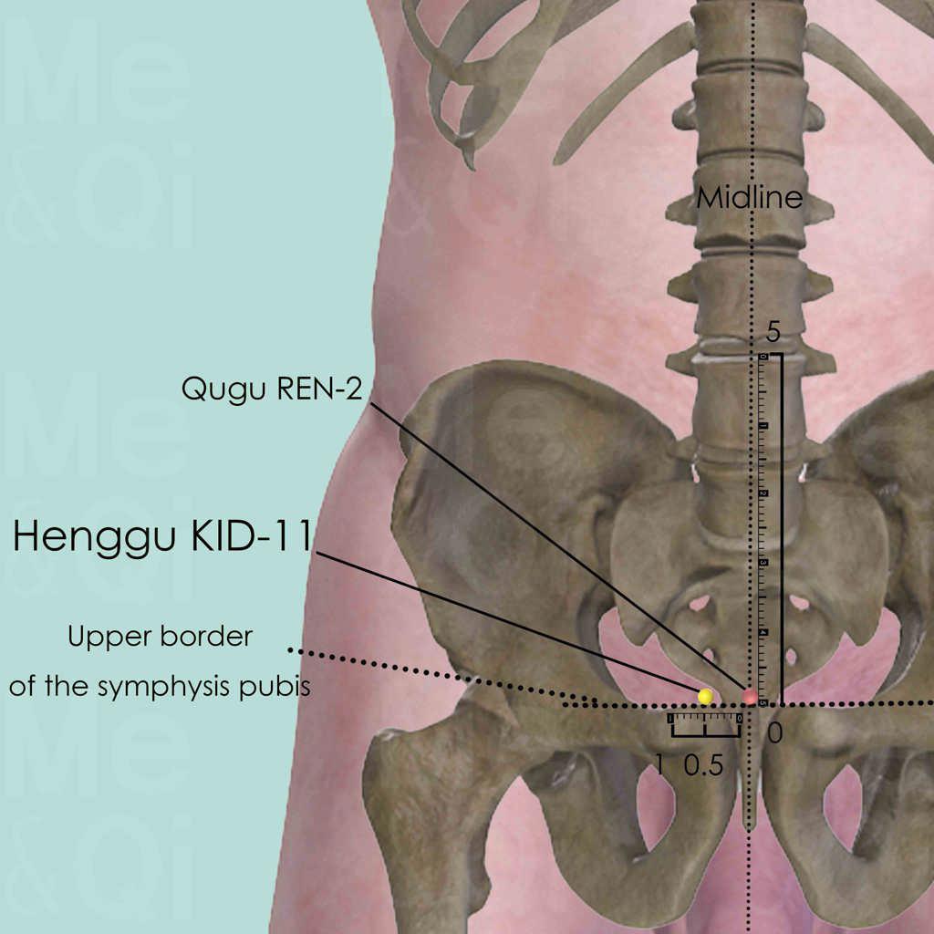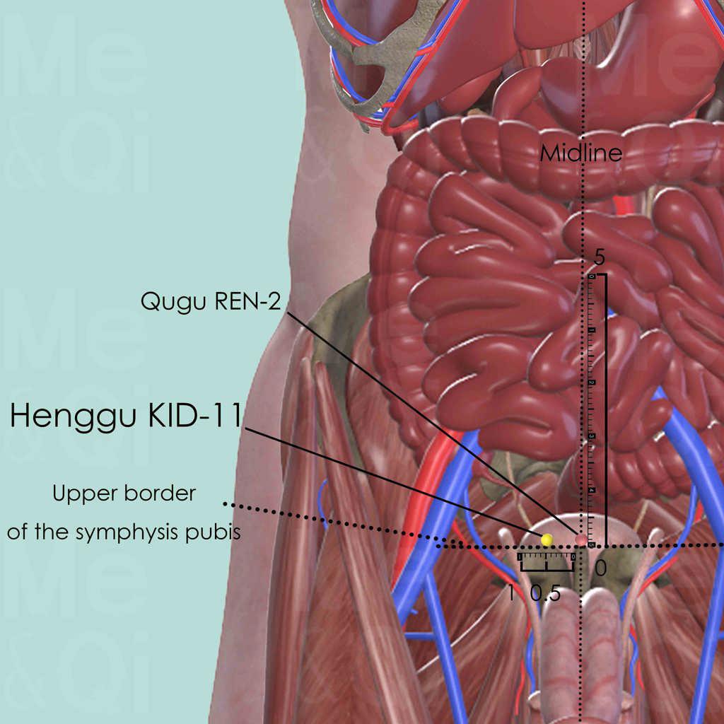 Jiayi Jing: The name 'Henggu' (横骨) refers to the ancient anatomical term for the pubic bone, indicating the point's location at the superior border of the symphysis pubis.