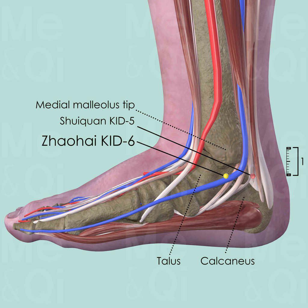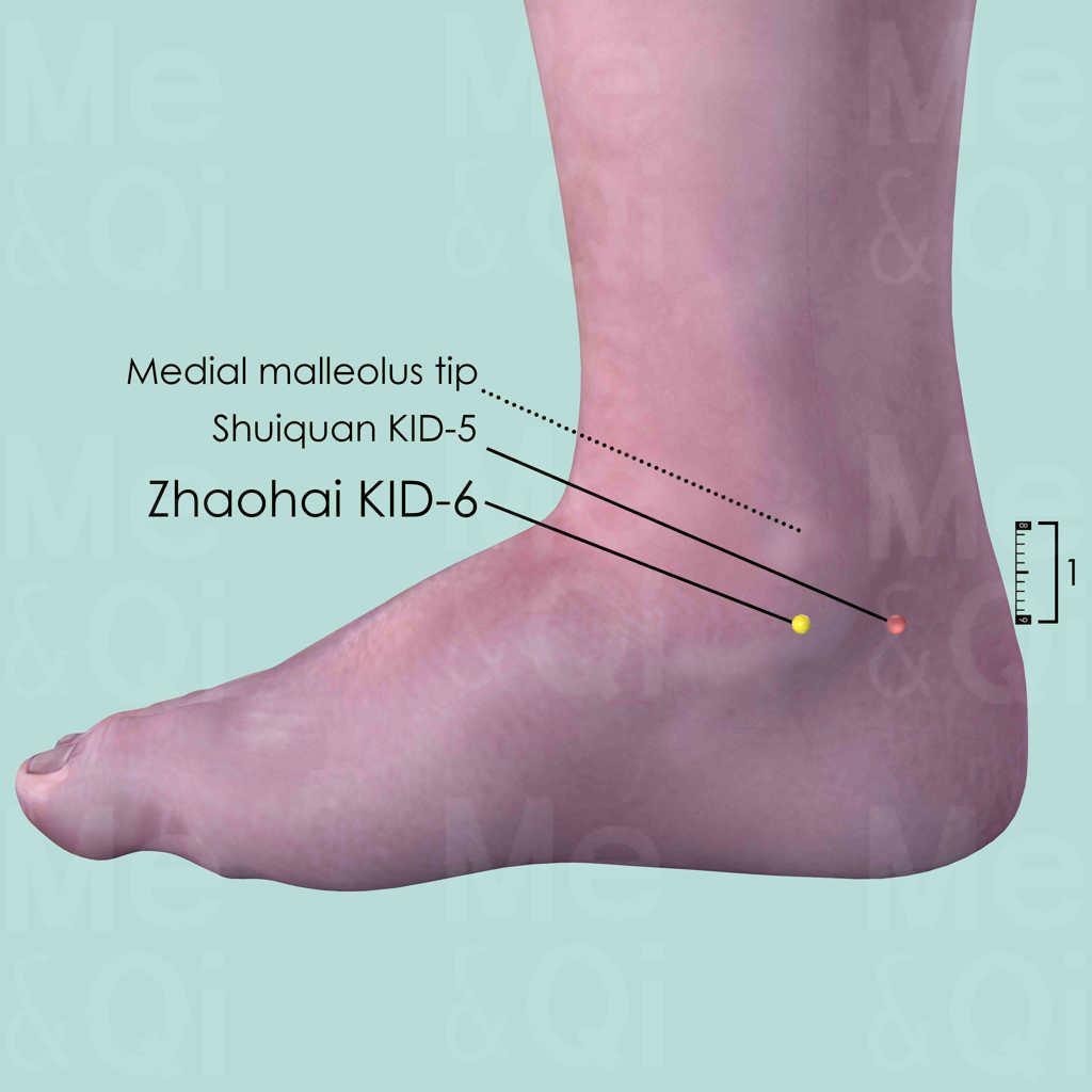 Zhaohai KID-6 is a very important point of the Kidney Channel with various functions.