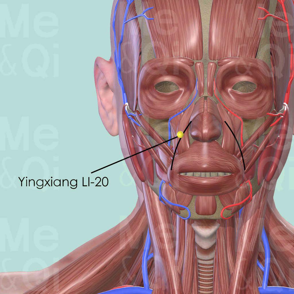 Yingxiang LI-20 is an important point and it can be indicated for any types of nose related disorders such as sneezing, loss of smell, stuffed nose or nasal polyps.
