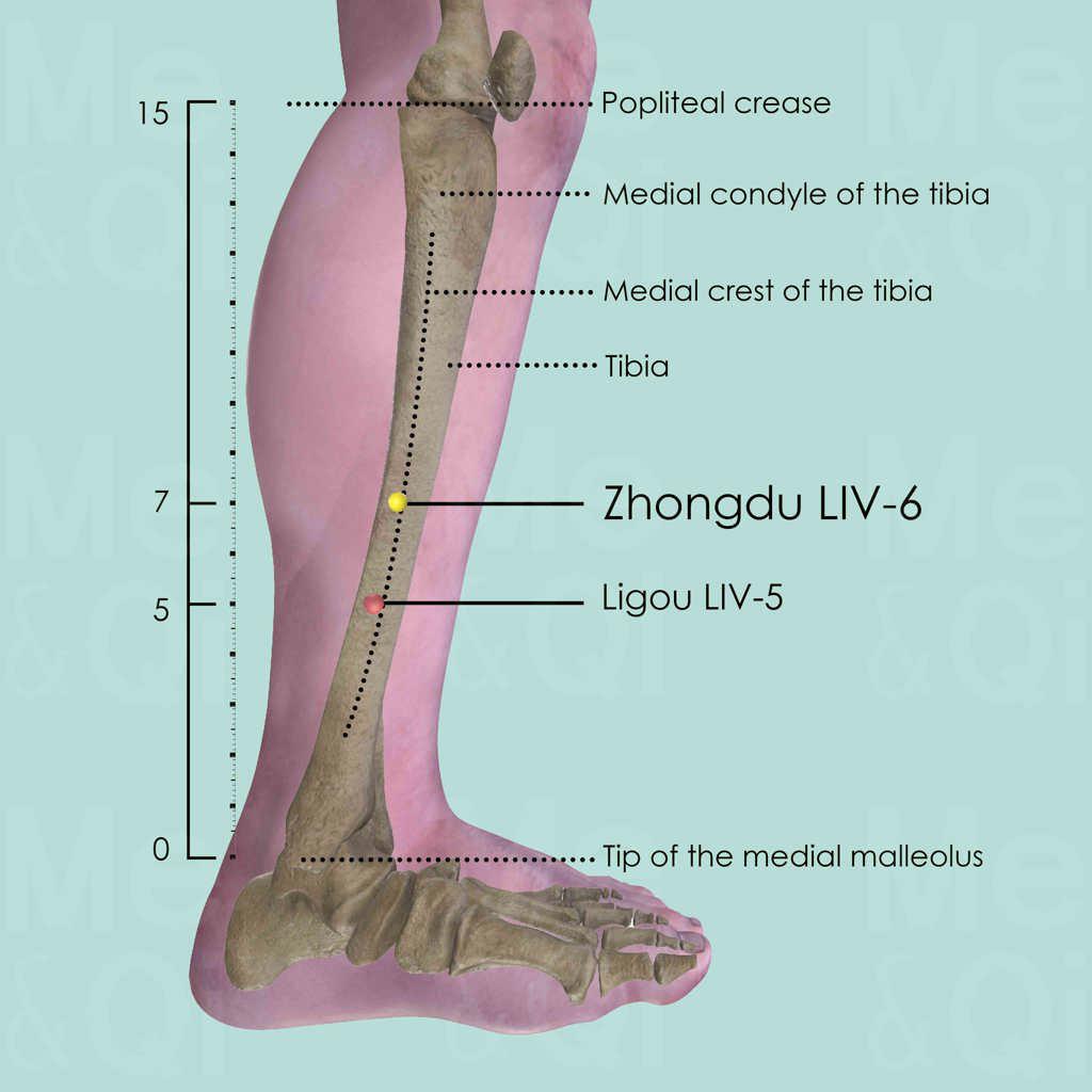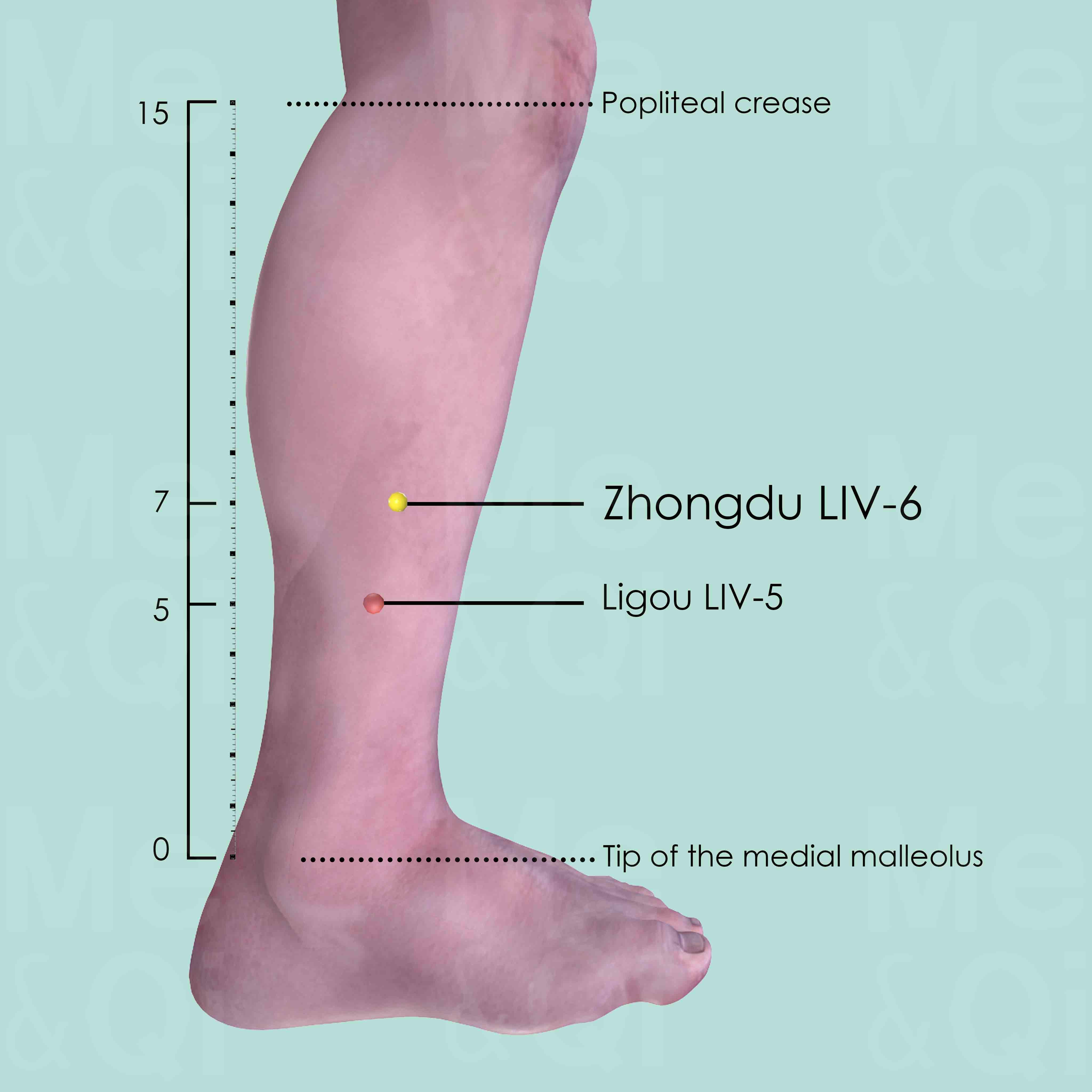 Like Ligou LIV-5, LIV-6 has a close relationship with the genitourinary system and is used for clearing Damp-Heat there. The typical manifestation is Shan disorder (Hernial and Genitourinary disorder).