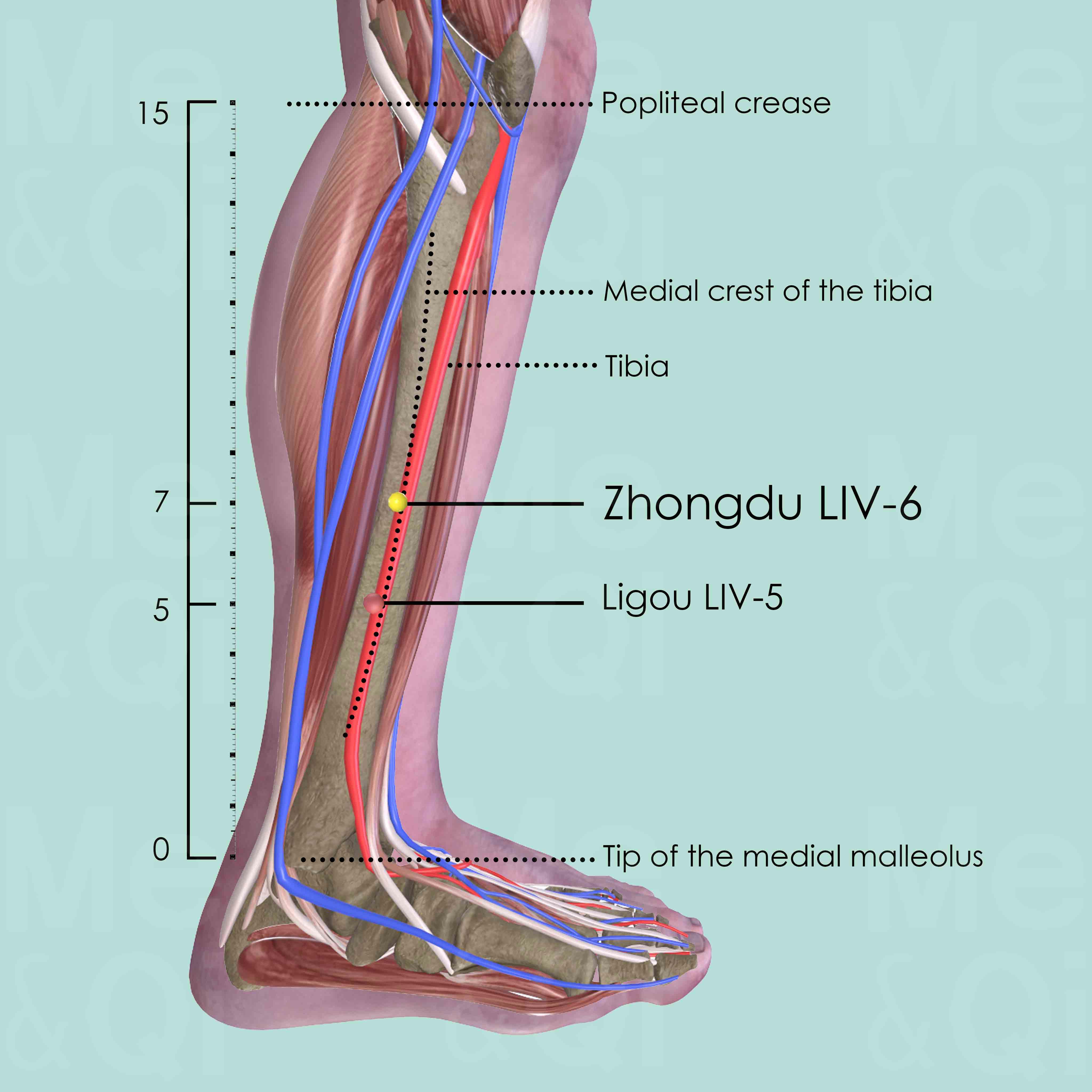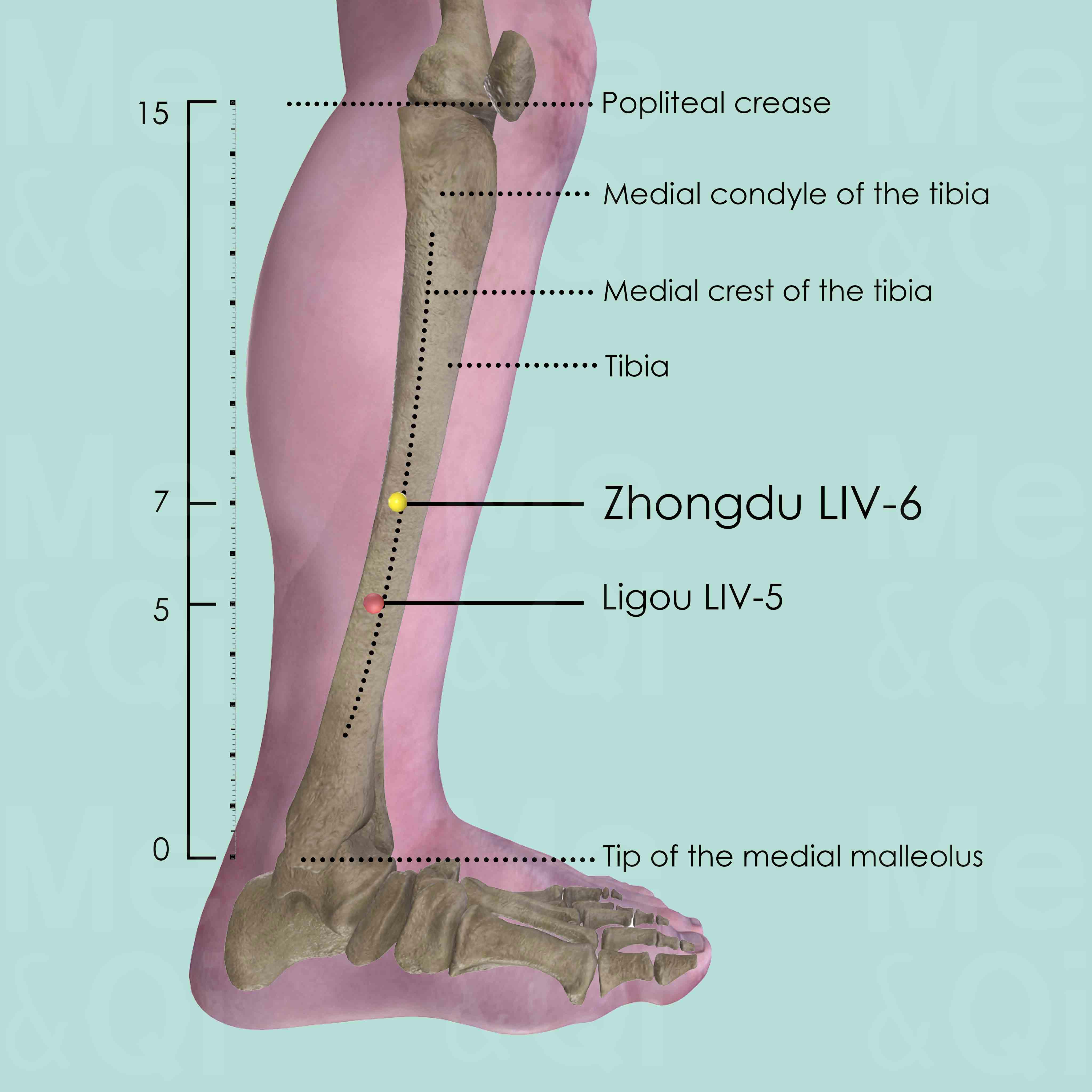 The use of LIV-6 is very similar to LIV-4 and LIV-5. It is mainly used in Excess patterns and acute cases to stop pain caused by obstruction of Liver Qi or Damp-Heat (eg: urinary pain such as cystitis).