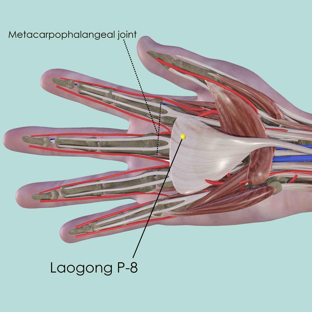 Laogong P-8 is the most useful Pericardium Channel point in clearing various of Fire, especially in the Heart.