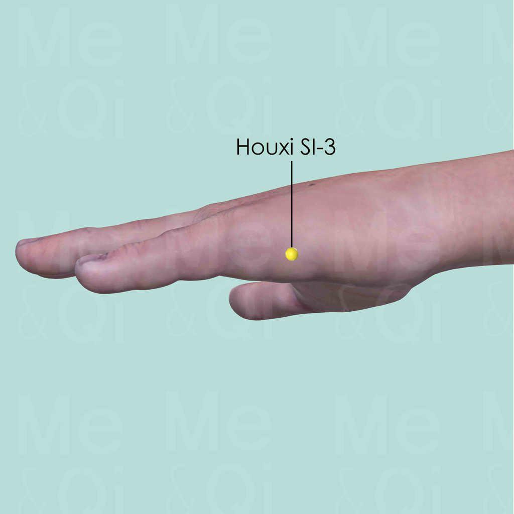 Houxi SI-3 is the confluent (opening) point of the Governing Vessel and it can be stimulated for a wide range of disorders related to this Extradentary Vessel.