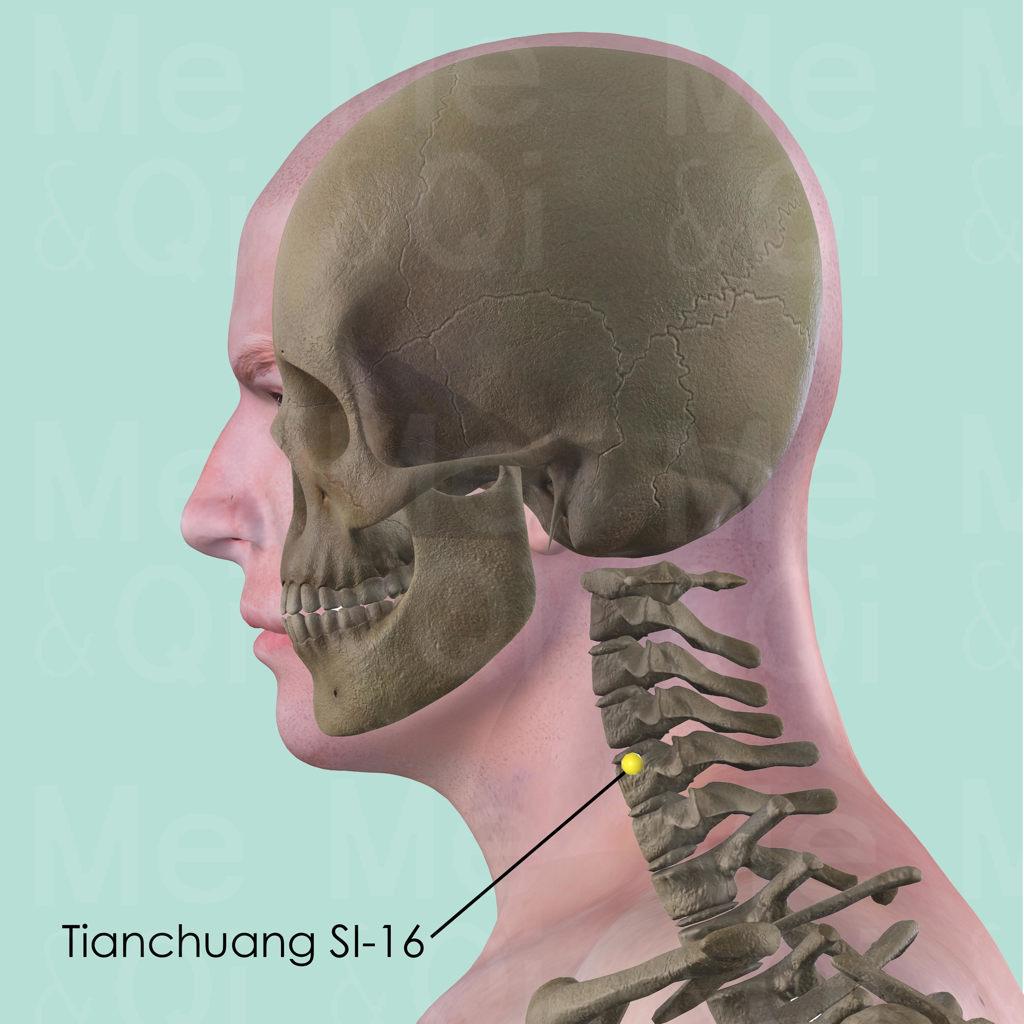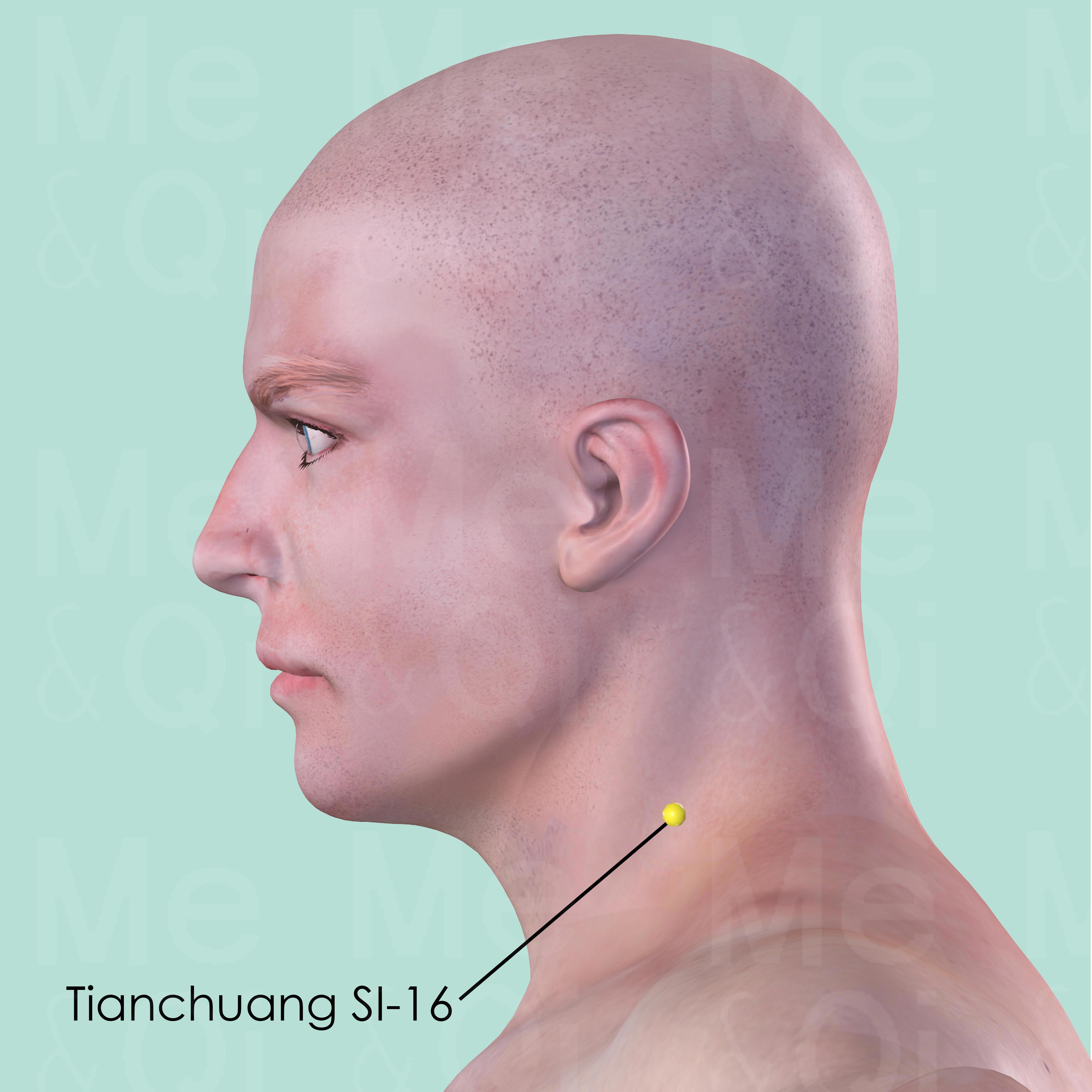 As the Window of Heaven point of the Small Intestine Channel, Tianchuang SI-16's main function is to calms the Mind by regulating the Qi ascending and descending to and from the heat. Therefore, it is able to treat symptoms like manic behavior, manic depression or hallucination of 'Ghost'.