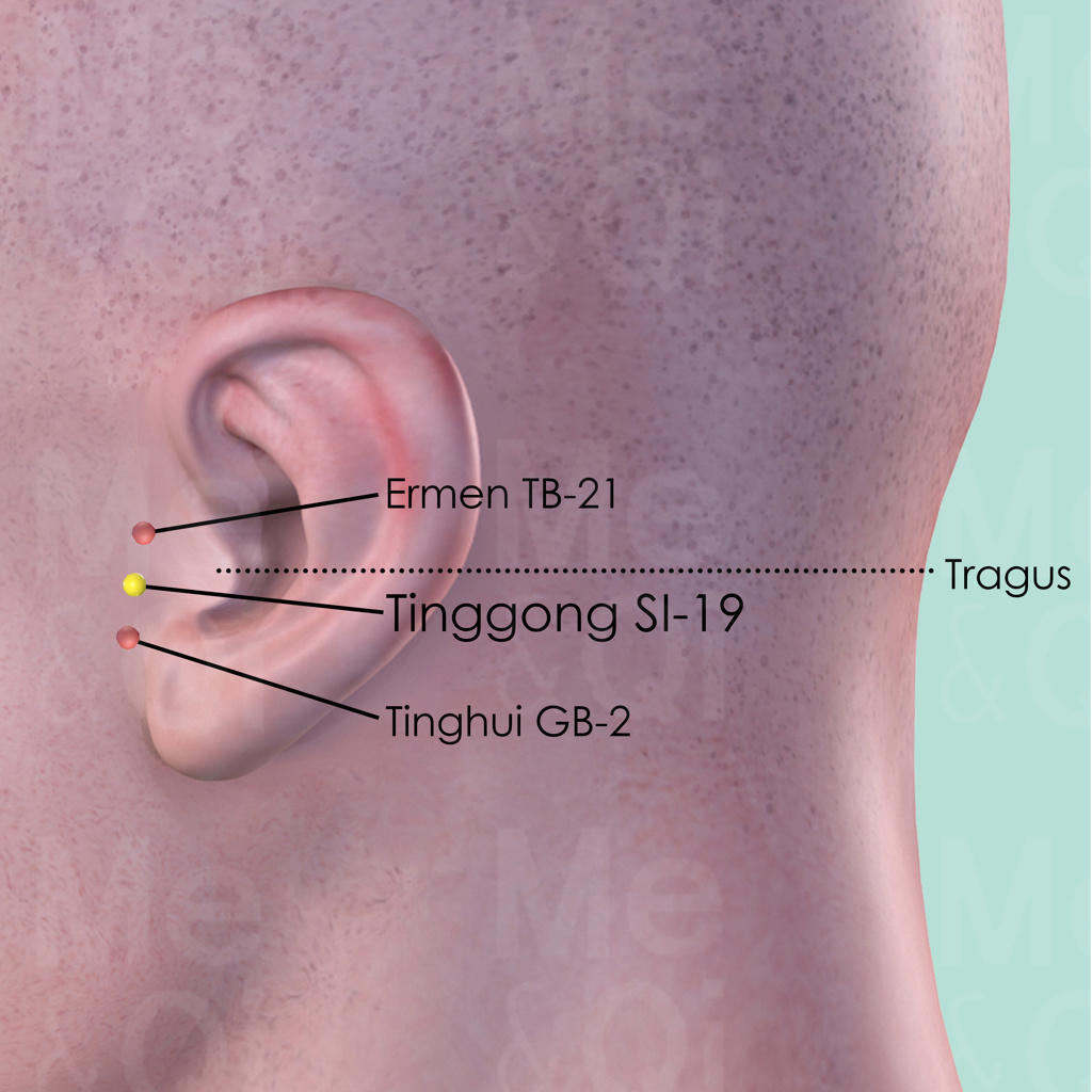 Tonggong SI-9 is one of the most important local point for deafness and tinnitus, especially if they are called by certain Deficient patterns such as Lung and Heart Qi Deficiency. Often used together with Yifeng TB-17, they can be stimulated to invigorate Qi in the ears.