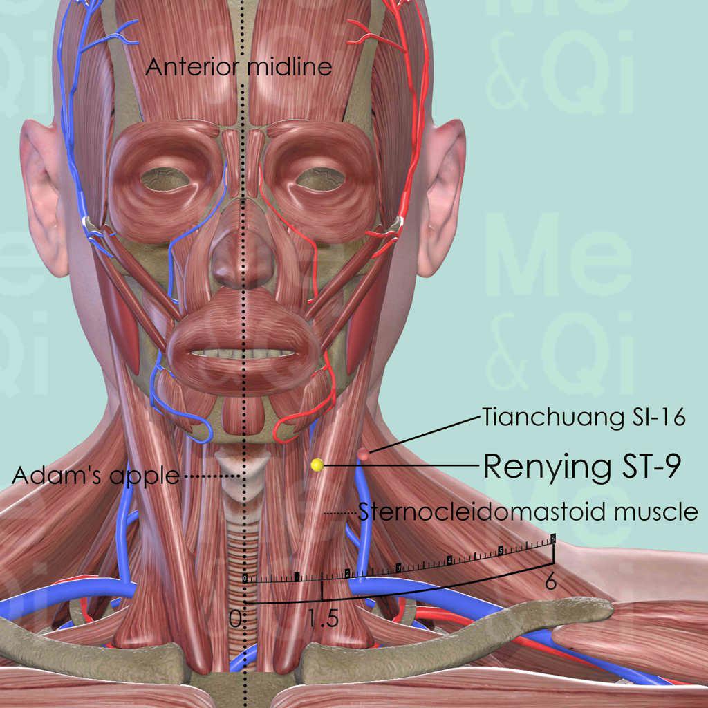 It is also the Sea of Qi point. By definition, it tonifies Qi. However, in practice, Renying ST-9 is more used to regulate Qi and restore Qi balance between different parts of the Body (eg: Qi Excess in upper part of the body and Qi Deficiency in lower part).