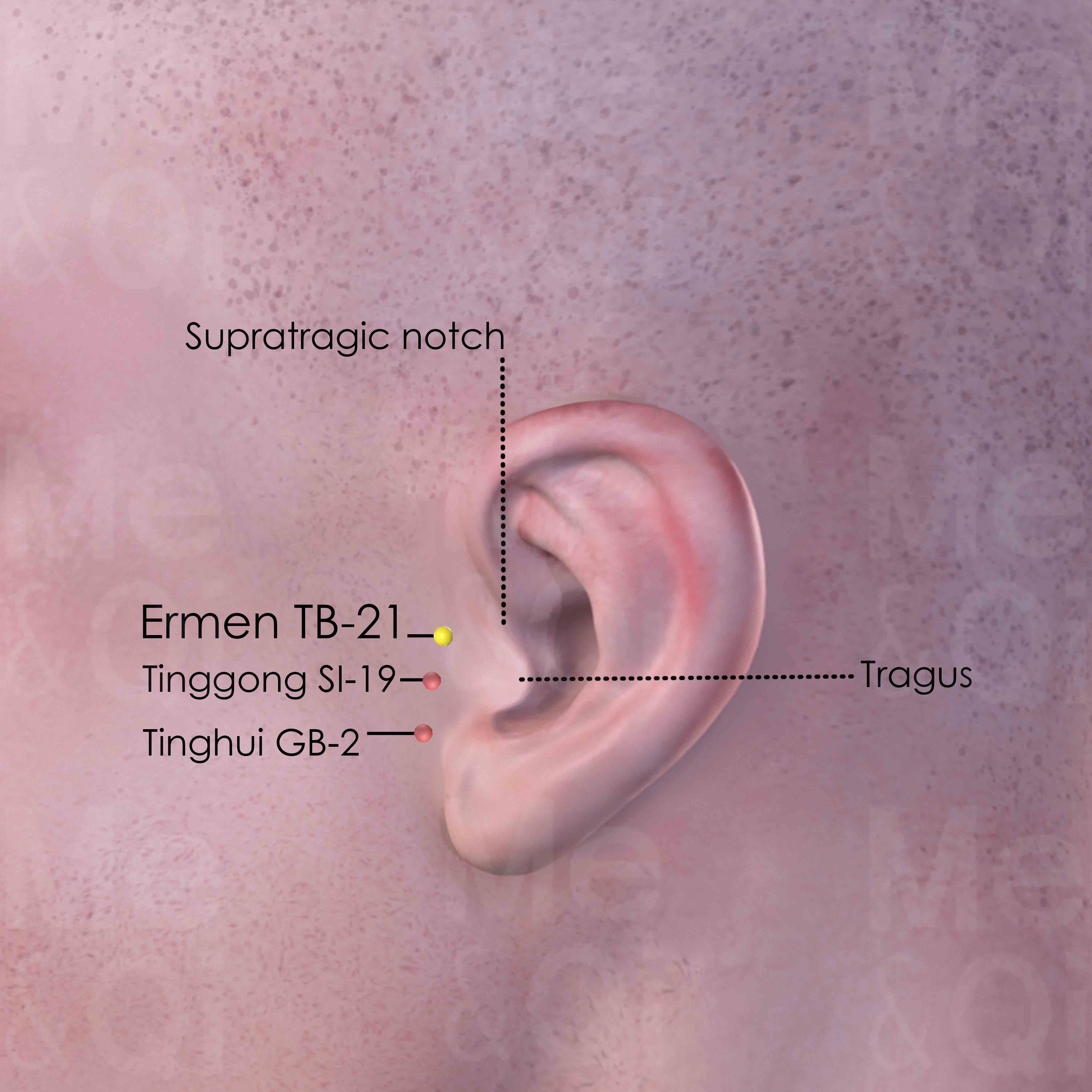 Ermen TB-21 is an important local point for ear disorder, especially if the original cause is Liver Wind agitating Internally due to Liver Yang Rising.