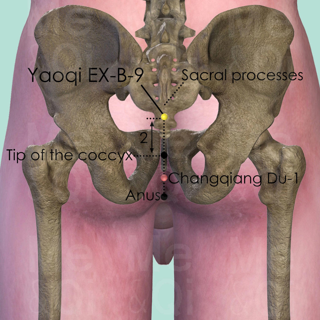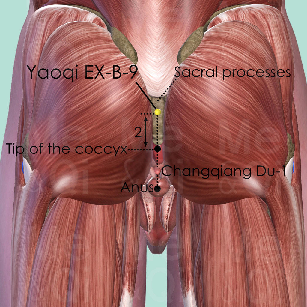 Yaoqi (腰奇), literally meaning "Lumbar Peculiar" or "Miraculous Lumbar Point," is one of the most important extra points for treating epilepsy and seizure disorders in Traditional Chinese Medicine. Its location at the sacrum, 2 cun above the tip of the coccyx, places it near the sacral hiatus—a gateway to the spinal canal that connects to the brain via the Du Mai (Governing Vessel).