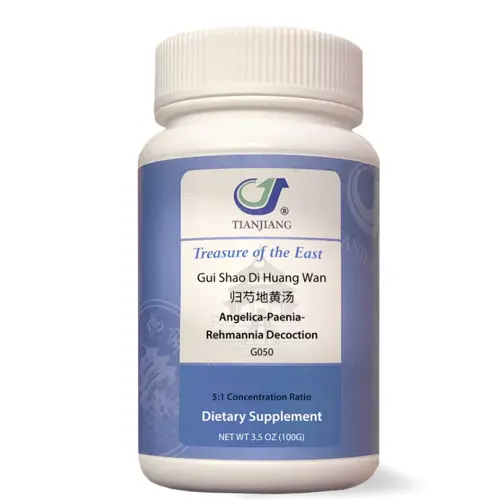 Gui Shao Di Huang Tang is a 8-ingredient Chinese Medicine formula with Prepared Rehmannia (Shu Di huang) as a principal ingredient.